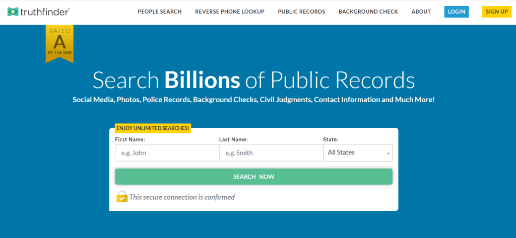 - Reports offered: People search, background search, criminal records